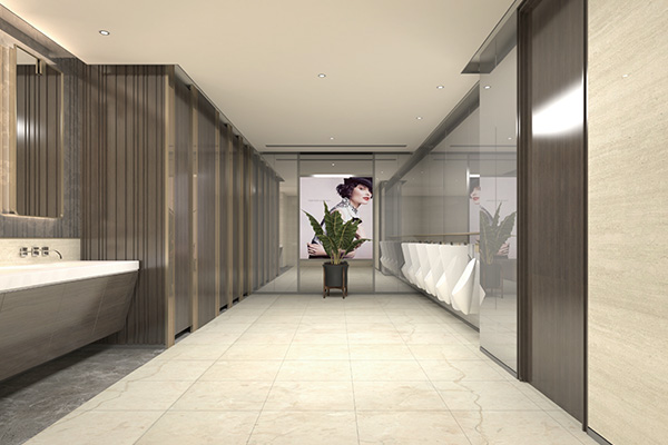 公共衛(wèi)生間隔斷不僅僅起到了間隔單間的作用,材質(zhì)、尺寸和距離的把控也在一定程度上影響了整體的裝飾美感,比較常見的隔斷材質(zhì)有PVC板、鋼化玻璃、復(fù)合板、石材等